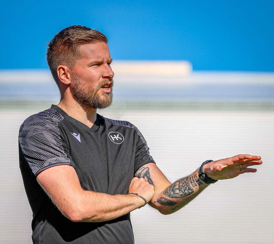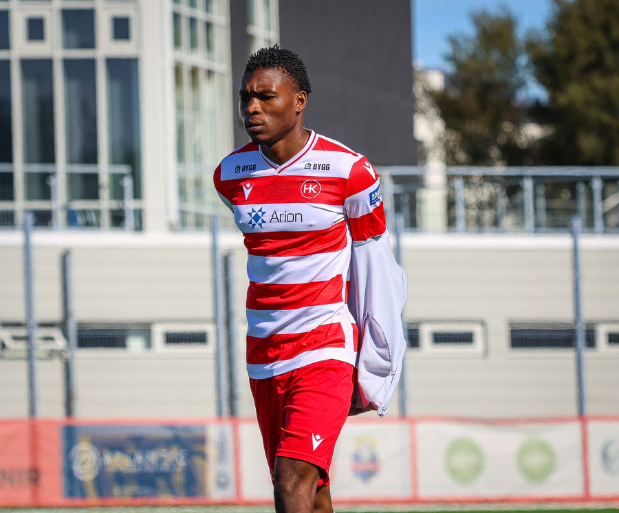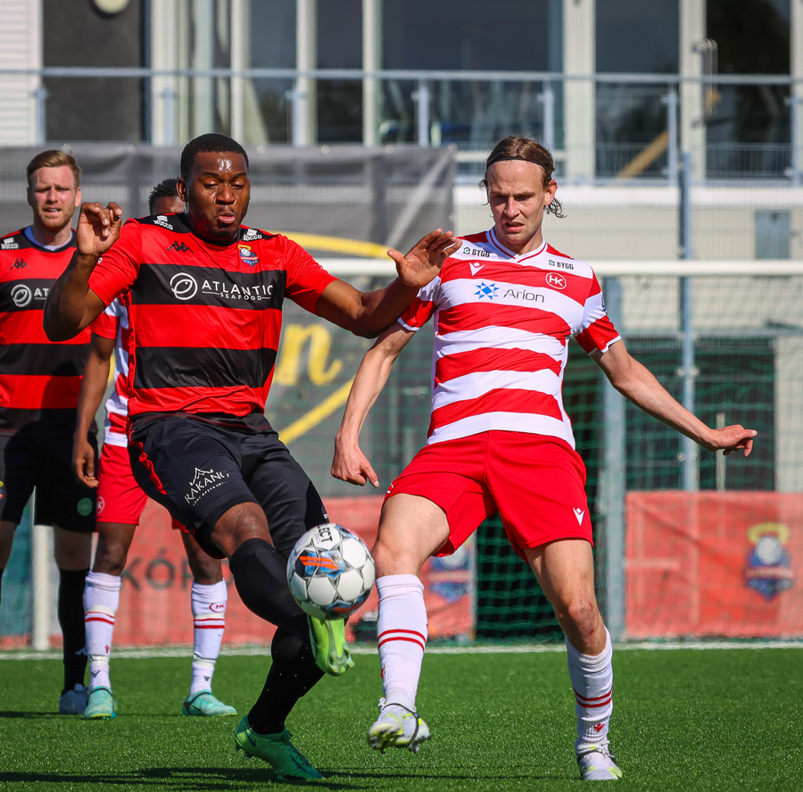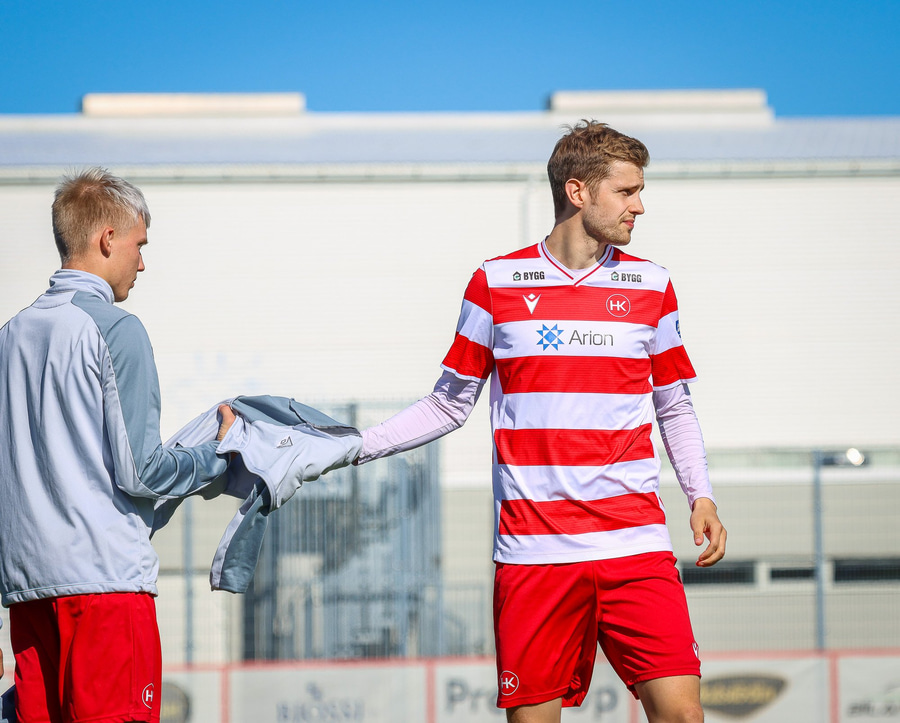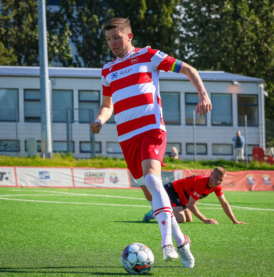 HK komst í hraða sókn sem endar með skoti Hassan yfir markið langt úti vinstra megin í teig Kórdrengja.