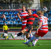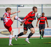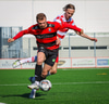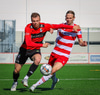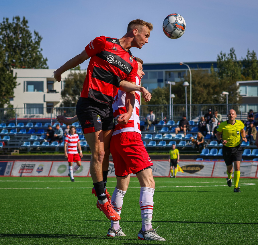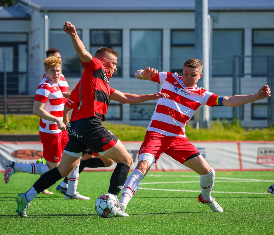 Arnar Freyr ver skalla af stuttu færi eftir hornspyrnuna. Iosu Villar átti skallann.