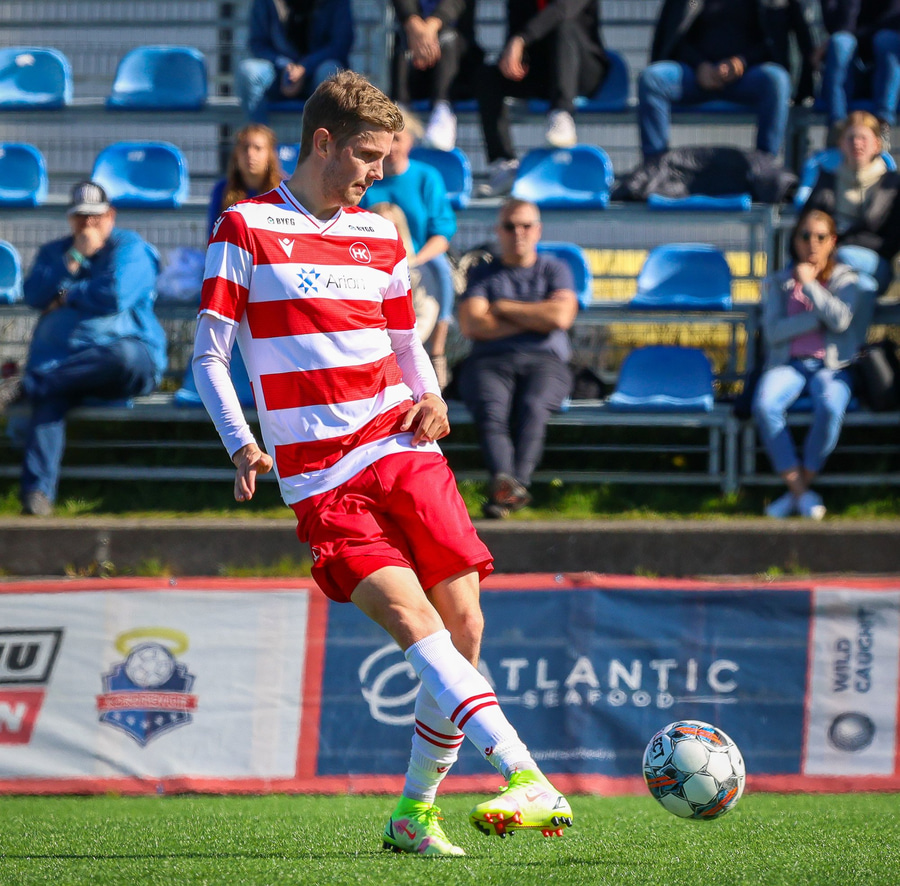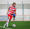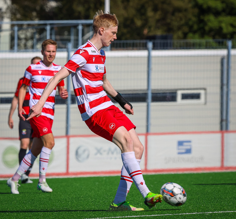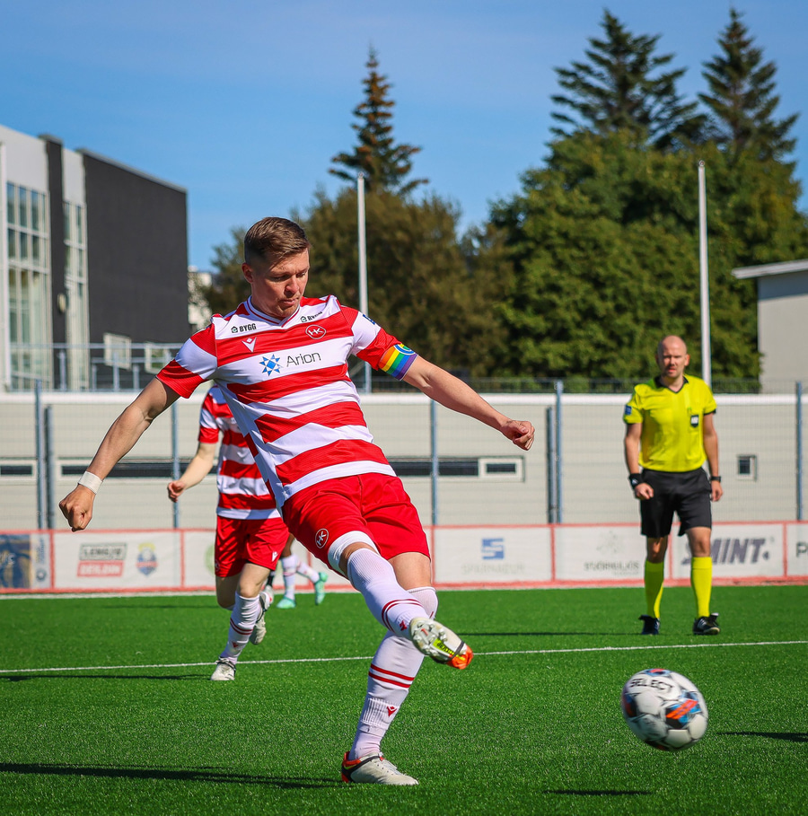 Kristján Snær Frostason leikur í hægri bakverði og lítur út fyrir að vera með allt sitt á hreinu einungis 17 ára gamall.