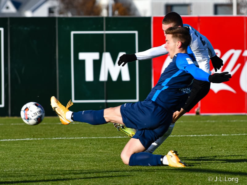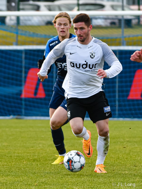 Patrik stálheppinn, brýtur illa á Jóhanni Ægi sem liggur eftir og virkar sárþjáður. Einar hefur ekki séð atvikið en á gulu telst Patrik stálheppinn.