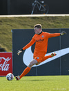 Oliver kemst upp að endamörkum og reynir að setja boltann fyrir en boltinn af varnarmanni og afturfyrir.