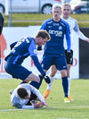 Björn Daníel fljótur að hugsa og tekur aukaspyrnu snöggt og sendir Úlf einn gegn Sindra. Sindri mætir vel út á móti og ver skotið en liggur eftir, fékk boltann í það allra heilagasta og steinliggur.
