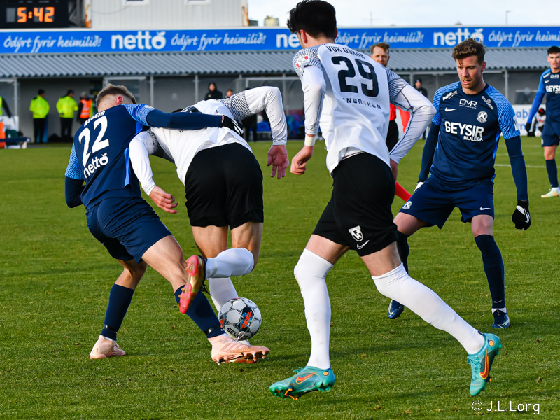 Aðstæður: Talsverður vindur þvert á völlinn og skítakuldi