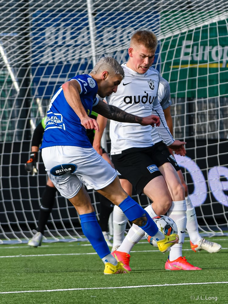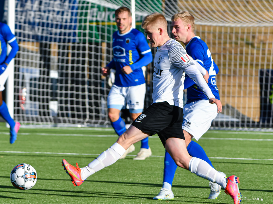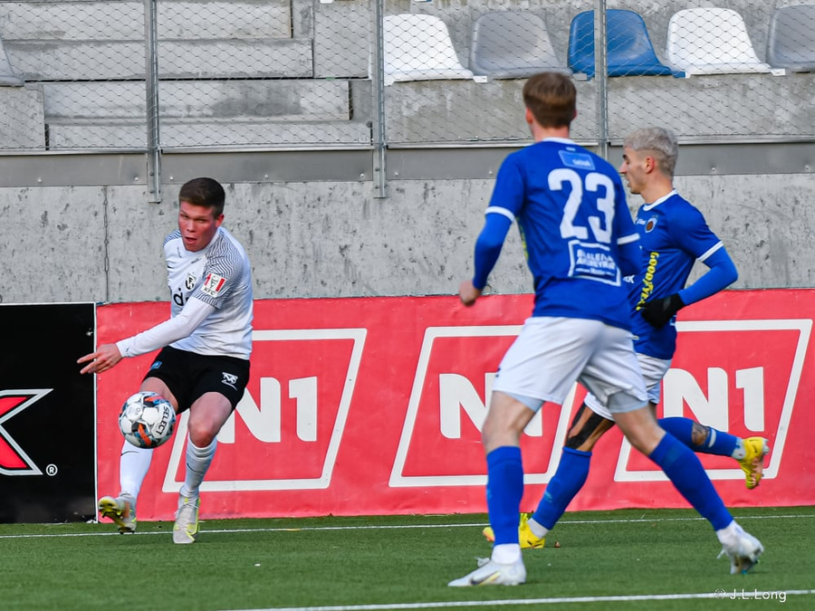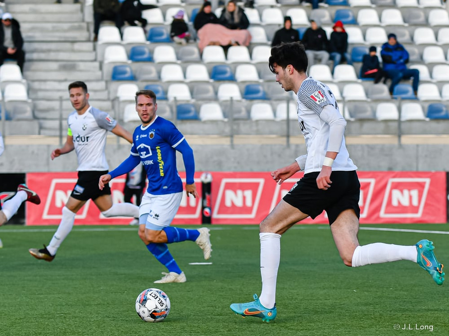 Vá, Tiago með unaðslega utanfótarsendingu á Óskar Jóns sem keyrir í átt að teignum, Óskar fær hlaup frá Jannik en kýs ekki að nota hann og fer inn á völlinn á vinstri fótinn sinn og á skot í átt að marki en það fer í varnarmann og í hornspyrnu!