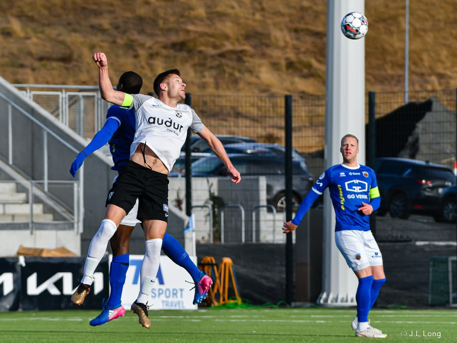Innkast á Tiago sem á geggjaða fyrirgjöf inn á teig þar sem Jannik Pohl nær að setja hausinn í knöttinn en skallinn er framhjá markinu!