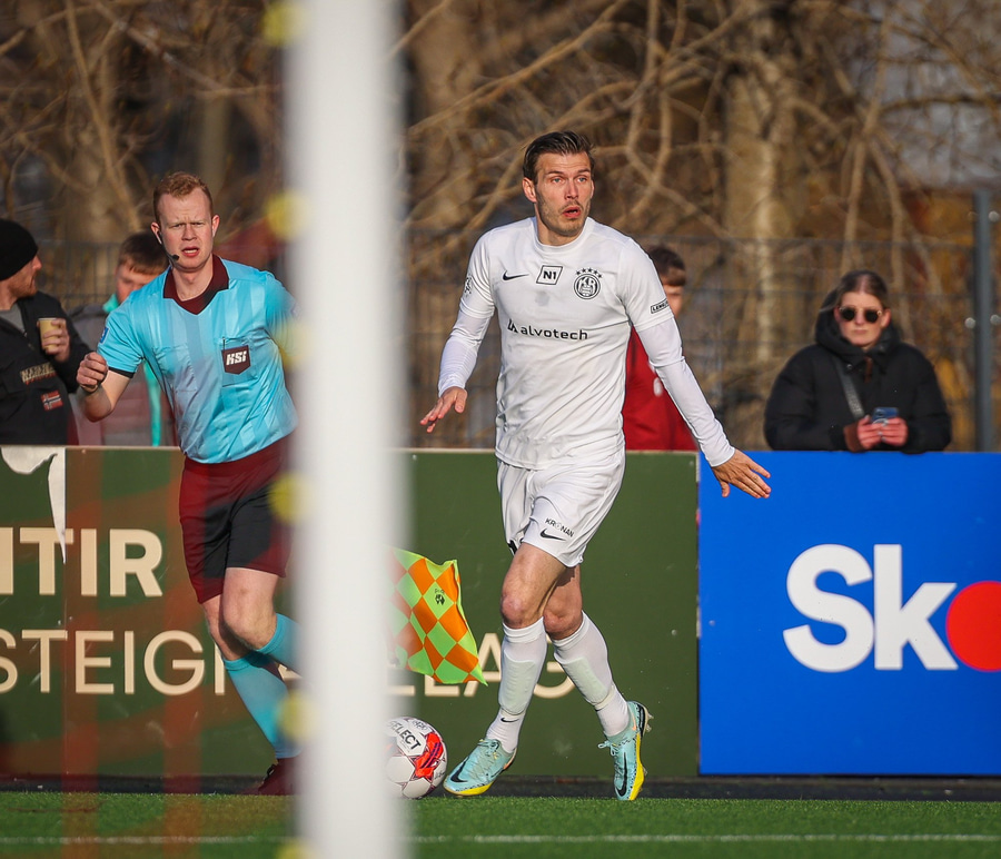 KR-ingar reyna að byggja upp sókn hérna en hún endar í frekar máttlausu skoti frá Aroni Þórði.