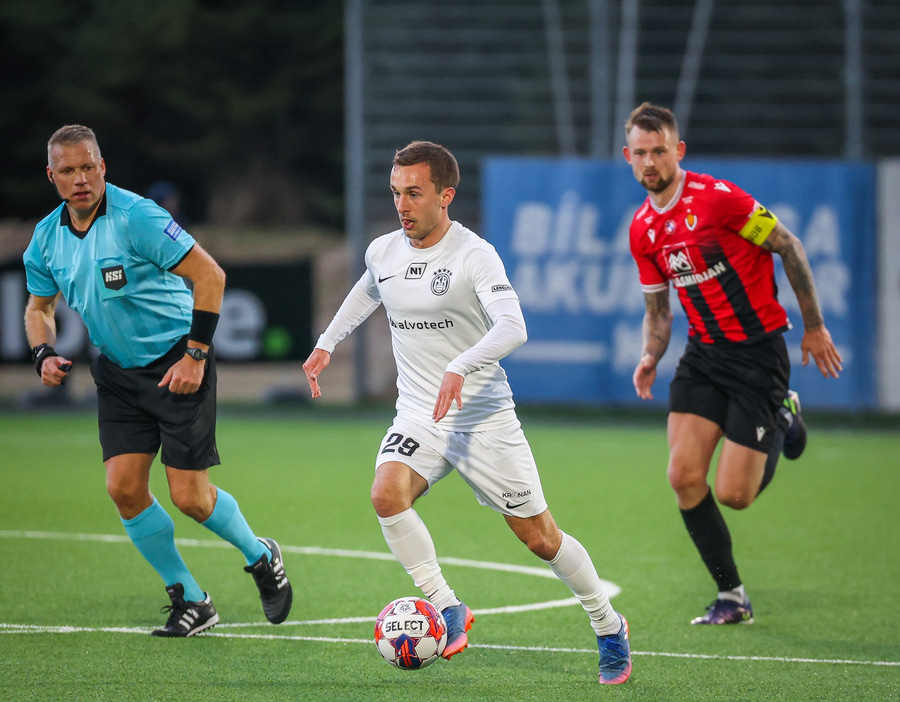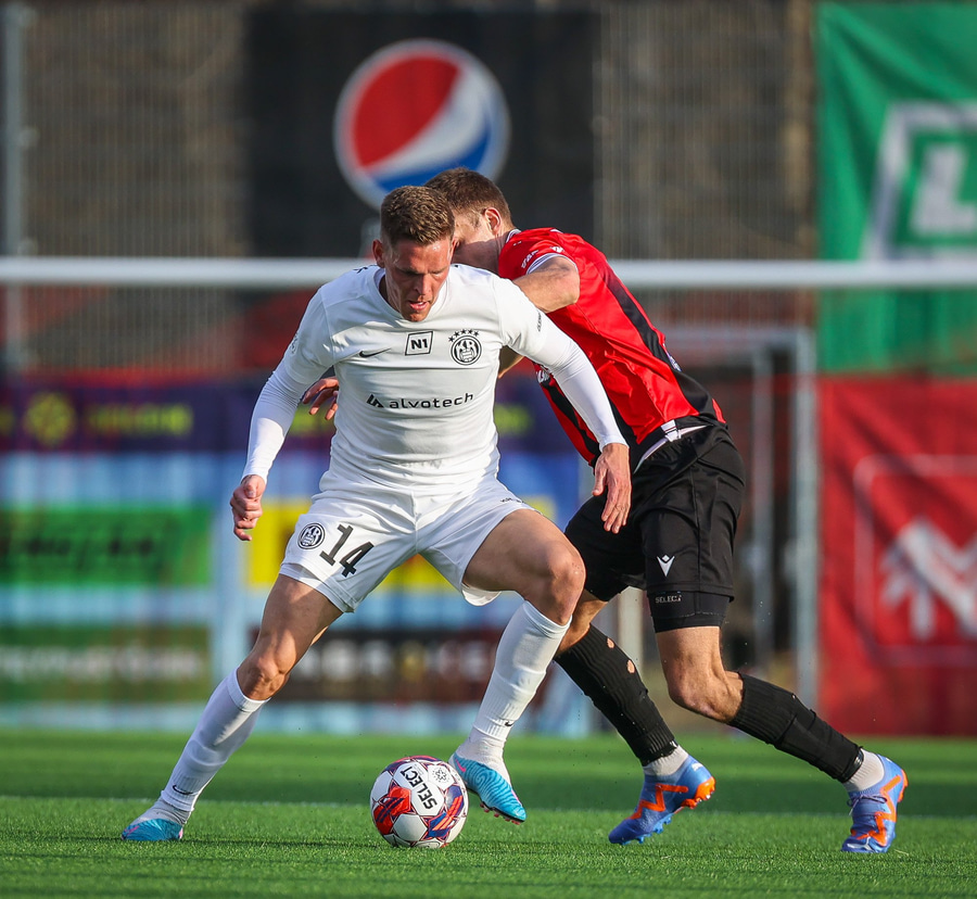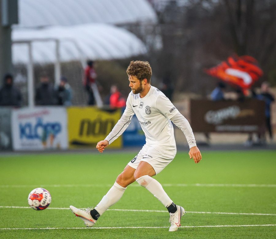 Stór mistök frá Halldóri Smára sem sendir boltan beint á Kennie.
