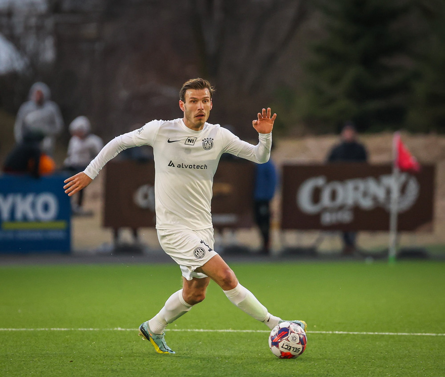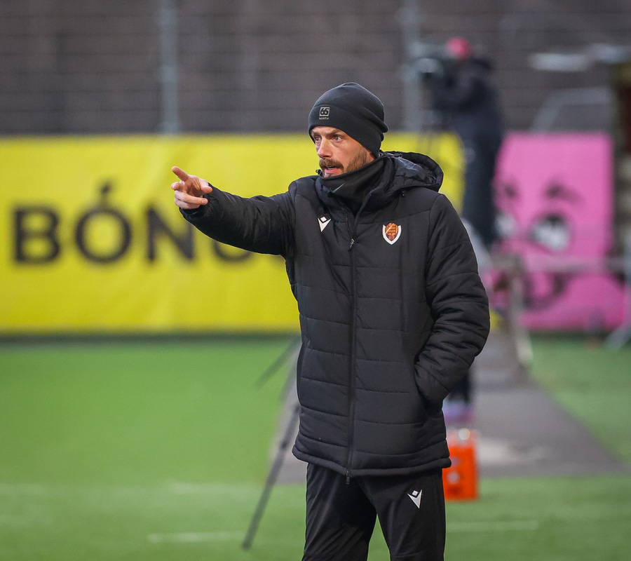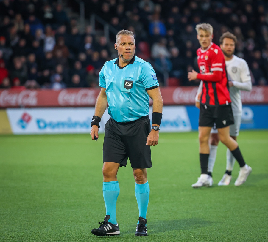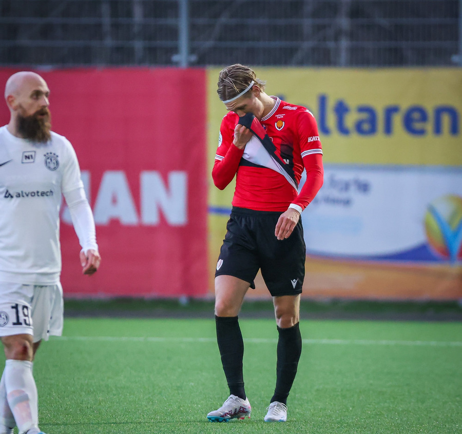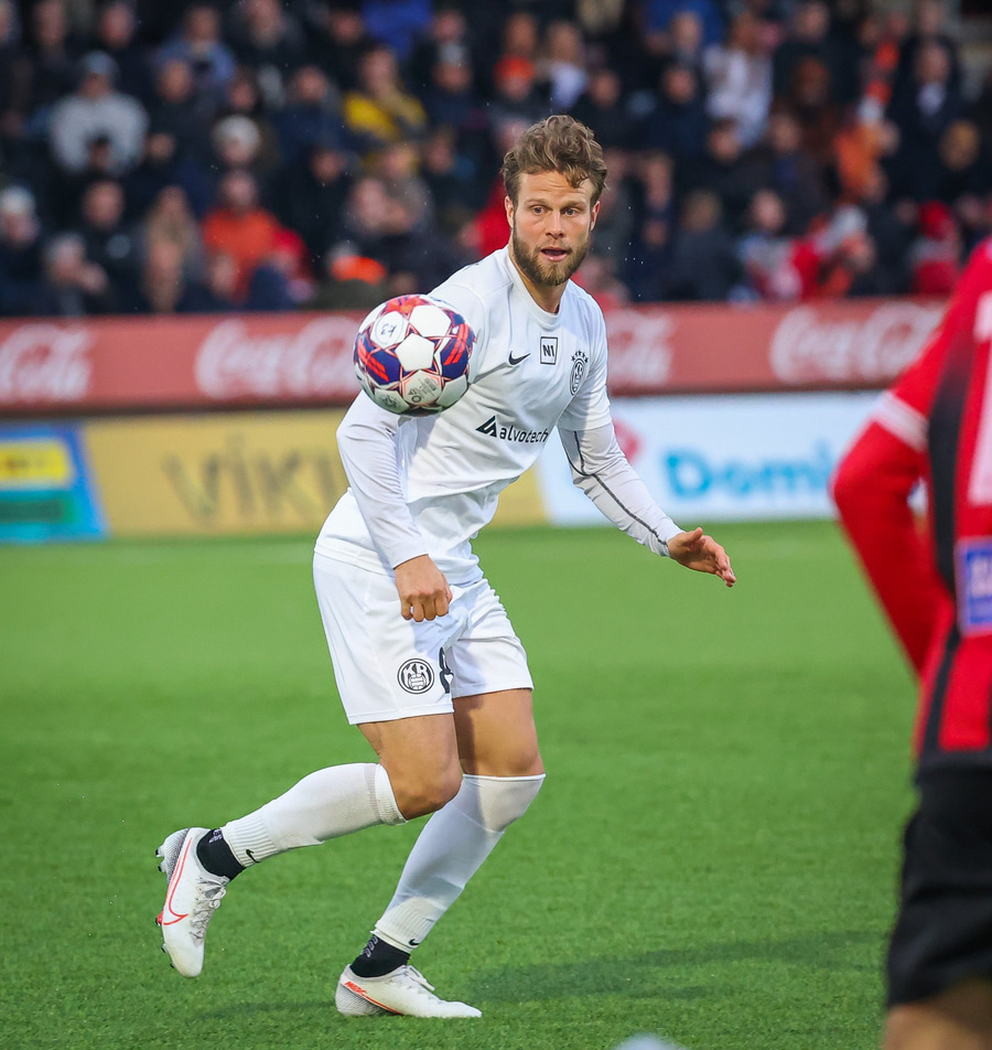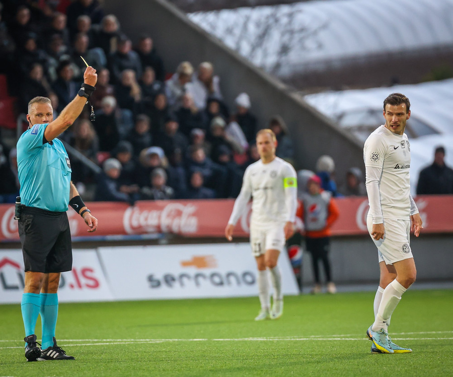 Kjellevold nálægt því að gera svakaleg mistök. Hann hittir ekki boltan almennilega og boltinn stekkur næstum til Víkinga en hann nær að kasta sér á boltan.