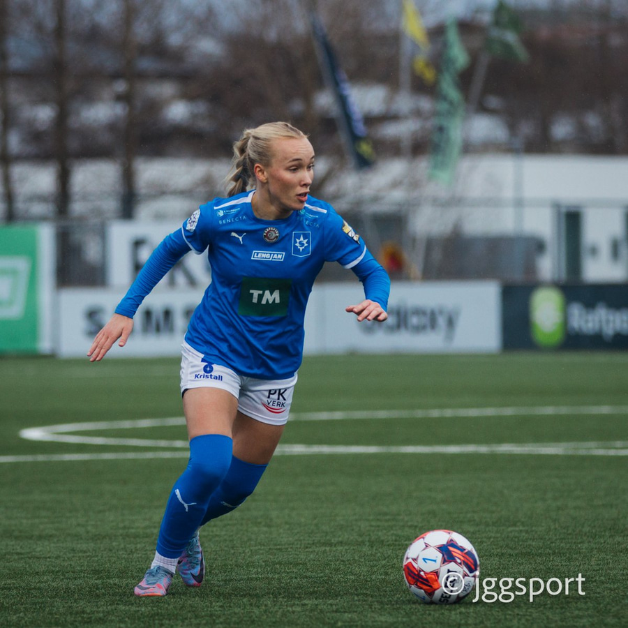 Olga á sprettinum upp hægri kantinn, cuttar inn til hægri og finnur Kristínu Ernu í D-boganum en Stjörnhukonur vinna af henni boltann