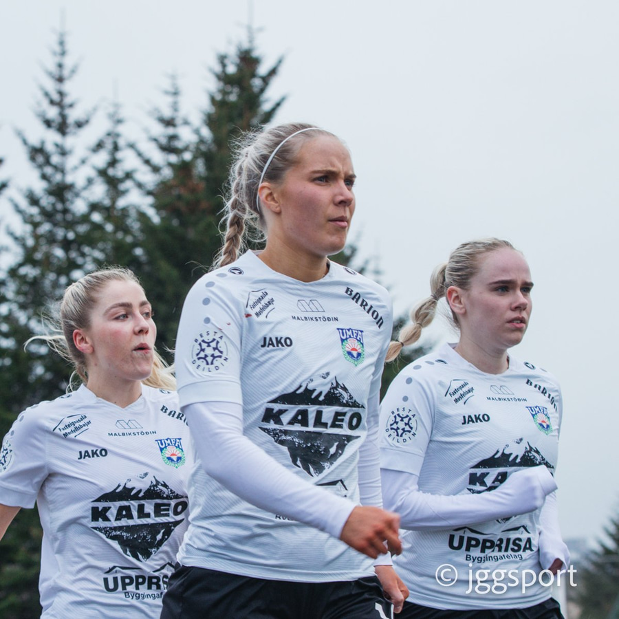Enn og aftur eru gestirnir eitthvað að dóla á boltanum í öftustu línu og Guðrún Karítas stelur af þeim boltan. Guðrún gerir hinsvegar ekki alveg nógu vel með færið þar sem hún lætur verja frá sér.