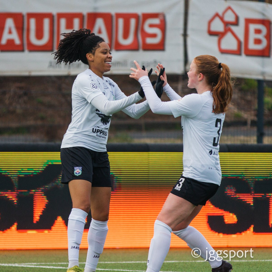 Alvöru lengjudeildar mark hérna! Langur bolti fram og Guðrún er sterkari og fljótari þannig hún kemst til boltan fyrst og er þá ein á móti markmanni. Hún er svo mjög yfirveguð og klárar framhjá Evu
