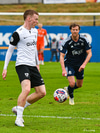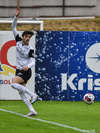 Marley Blair tekur aukaspyrnu í fínu skotfæri fyrir Keflavík en skotið hans fer yfir markið.