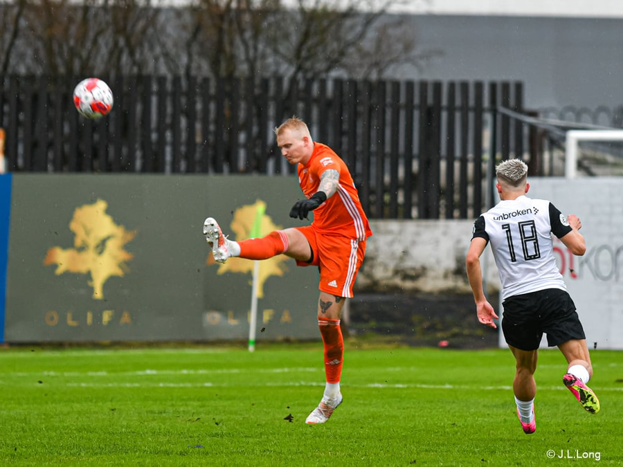 Gott langt innkast frá FH skapar smá hættu en Lennon tekur skotið sem fer framhjá.