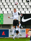 Hann þarf samt að hlaupa frá miðlínu og þegar hann kemur að vítateignum nær Rosenörn að loka vel þannig að Vuk skýtur í hann.
