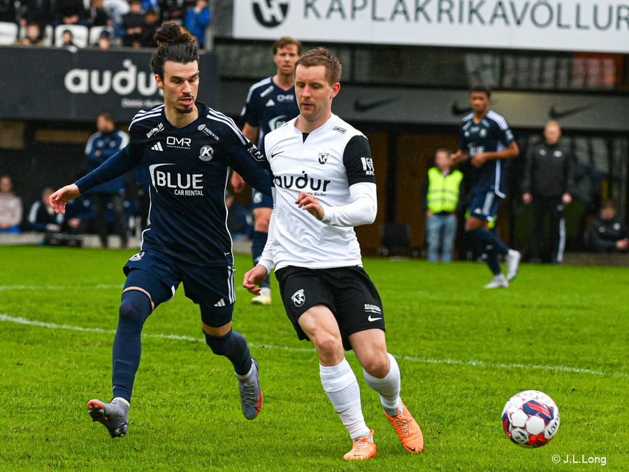 Keflavík tekur aukspyrnu frá miðlínu inn í teig þar sem verður til smá darraðardans og boltinn dettur fyrir Viktor á vítapunktinum þar sem hann hamrar boltanum í þaknetið með sinni fyrstu snertingu í leiknum!