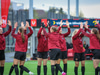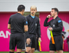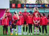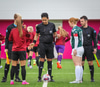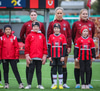 Fyrirliðarnir leiða lið sín til vallar, þetta fer að fara að byrja!
