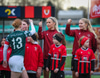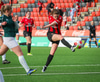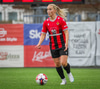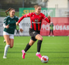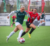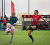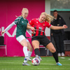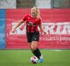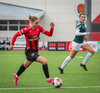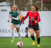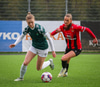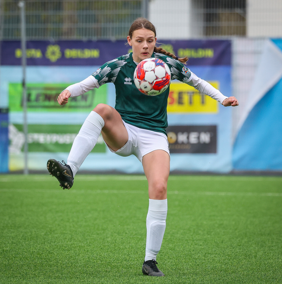 Emma vinnur boltann ofarlega á vellinum af Bryndísi G og tekur skotið sem Herdís ver meistaralega.