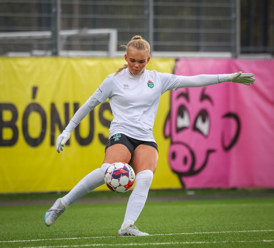 Ég held að Sigurborg sé að fara að snerta boltann þar sem Víkingur á hér markspyrnu!