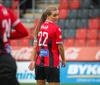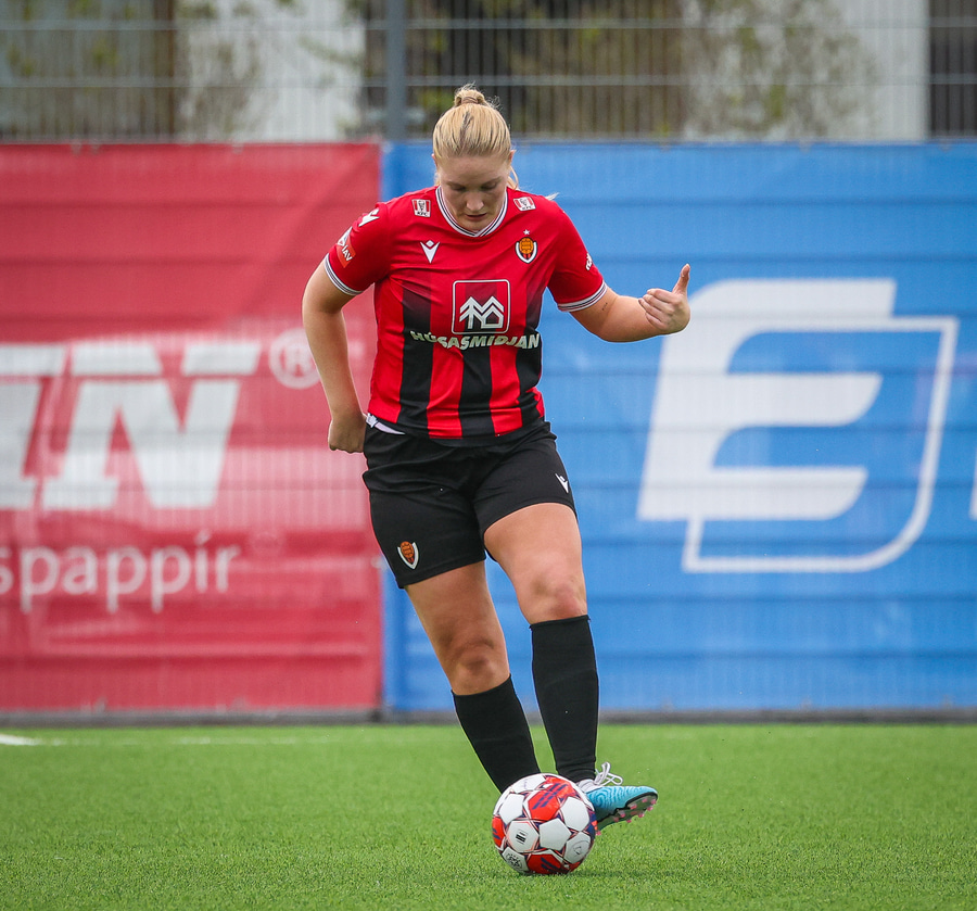 Svanhildur fær boltann aftur frá Huldu eftir stutt innkast og kemur með geggjaða fyrirgjöf á Sigdísi sem á skallann framhjá en hún er fyrir innan