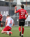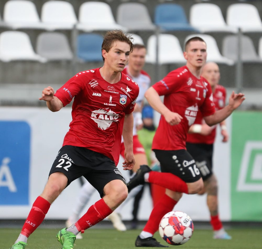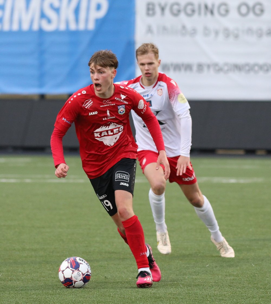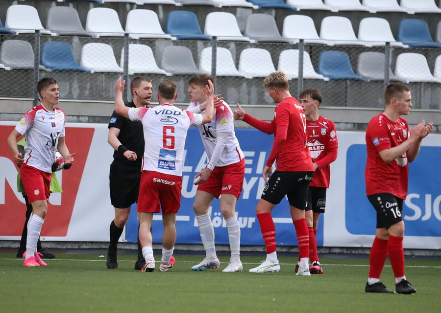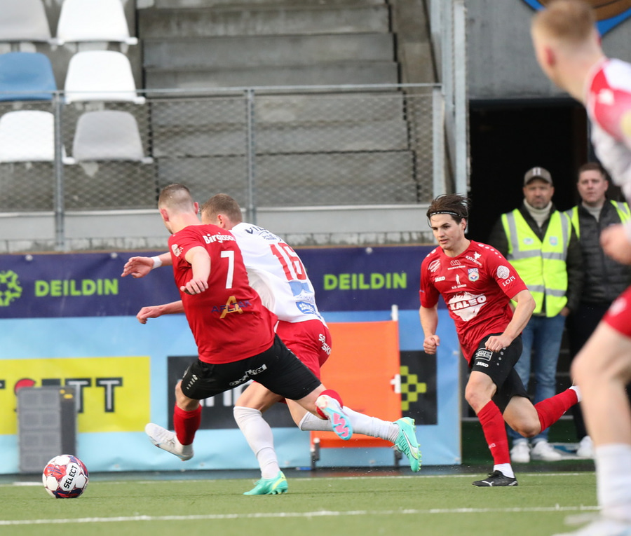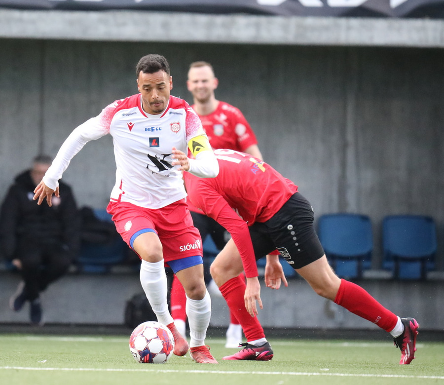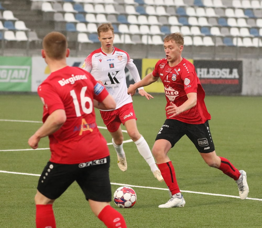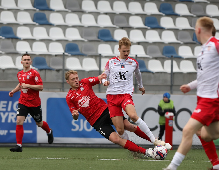 Harkaleg tækling frá Ásgeiri á Valdimar Daða.