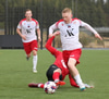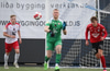 Samskiptaleysi hjá varnarmönnum Mosfellinga gerir það að verkum að Þórsarar skorar næstum sprellimark en boltinn rennur aftur fyrir
