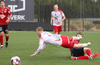 Ásgeir með skot að marki eftir sendingu frá Hjörvari en Aron Birkir á tánum og slær boltann frá marki.