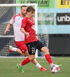 Bjartur Bjarmi prjónar sig í gegnum vörn Þórsara og reynir að koma boltanum á Arnór Gauta í álitlegu færi en Aron Birkir hársbreidd á undan í boltann.