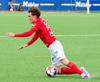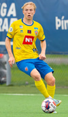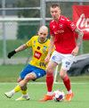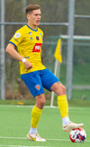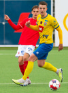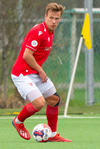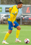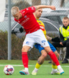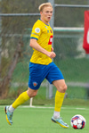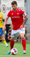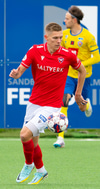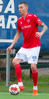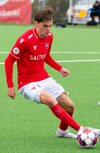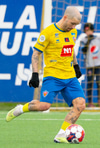 Fær boltann fyrir utan teig Vals og á bylmingsskot framhjá marki Vals.