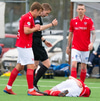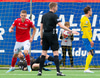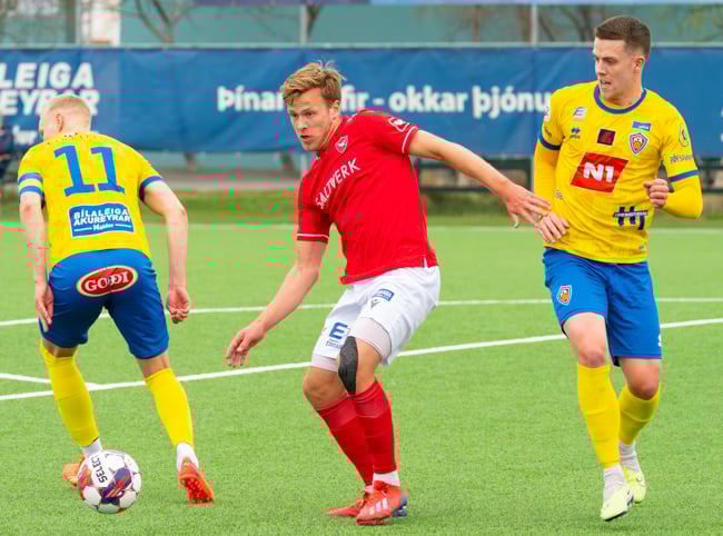 Ívar Örn brýtur mjög augljóslega á Andra Rúnari á miðjum vellinum, en er steinhissa og önugur yfir því að heyra flautið. Heimamenn þurfa að fara að einbeita sér að réttu hlutunum ef ekki á skelfilega að fara.