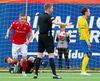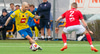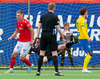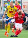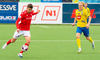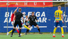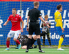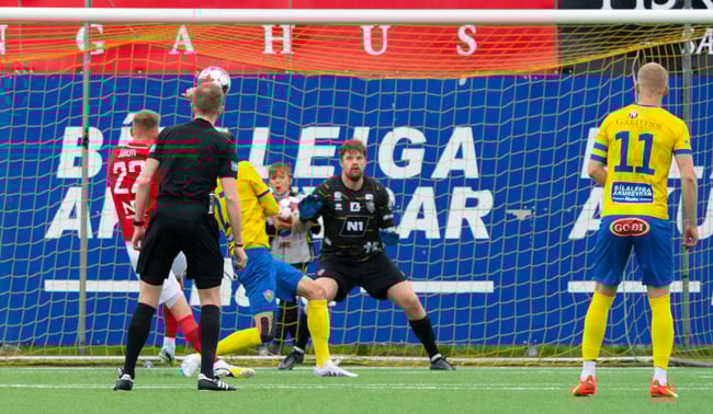 Þorri Mar tapar boltanum klaufalega á eigin vallarhelmingi og Aron Jóhannsson fær boltann af sirka 25 metra færi. Hann nennir engu rugli og neglir bara á markið. Boltinn fer þó ekki á markið, heldur rétt framhjá markinu.