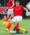 Harley Willard reynir að búa sér til skotfæri inní teig Vals, en skot hans fer í varnarmann og aftur fyrir. Ekkert verður úr horninu.