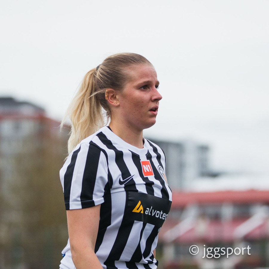 Boltinn dettur niður í teignum ertir horn sem endar með skoti yfir markið frá Margréti Selmu.