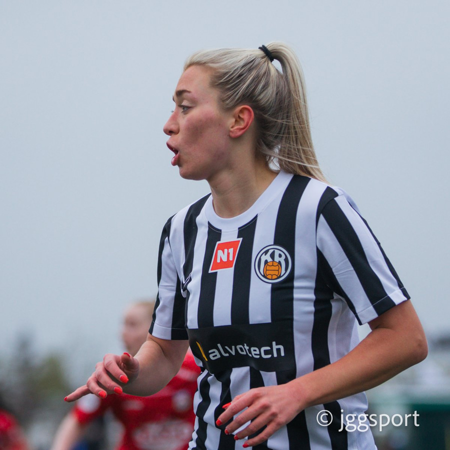 Fínt uppspil upp hægri kanntinn hjá KR sem endar með frekar dapri sendingu fyrir hjá Ragnheiði.
