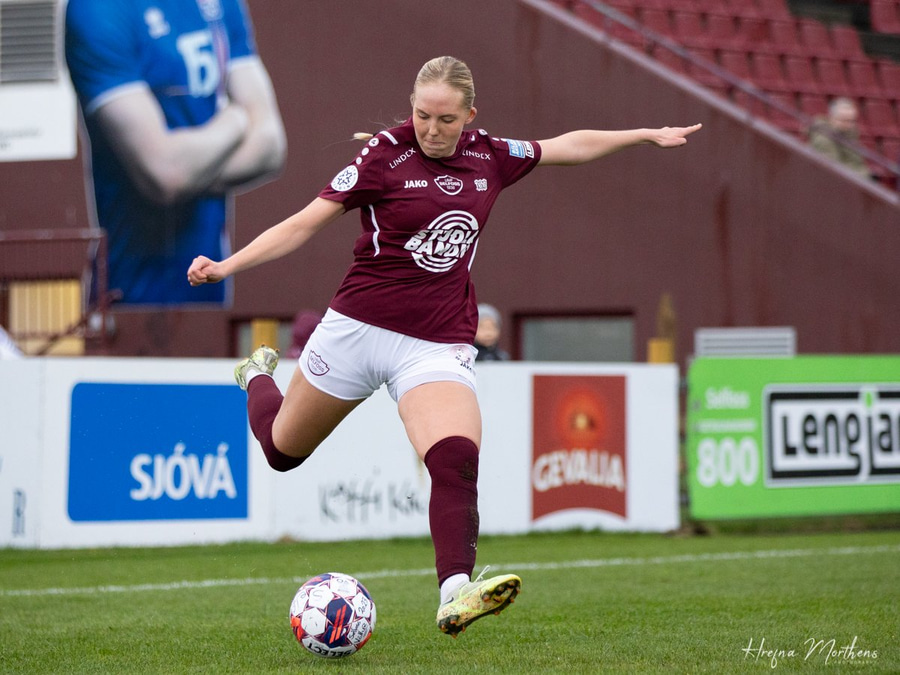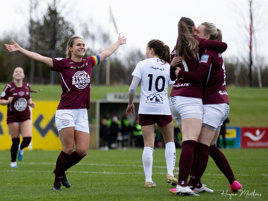 Barbára pikkar boltanum á Kötlu Maríu sem smellir boltanum í fjærhornið.