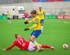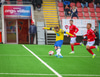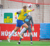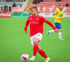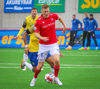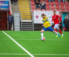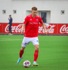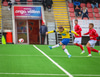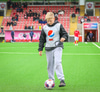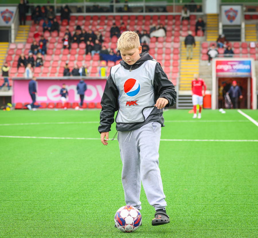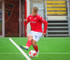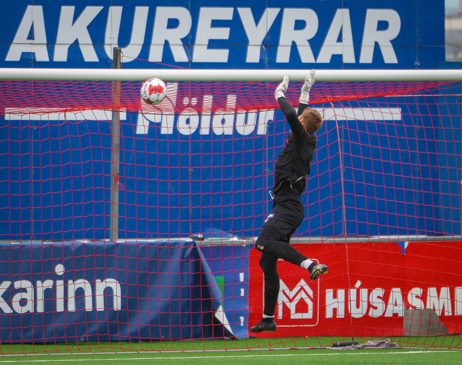 Fer framhjá einum,tekur svo skotið fyrir aftan miðju, sá að Frederik var kominn vel út úr marki sínu og lét vaða úr miðjuhringnum! Boltinn söng í netinu.