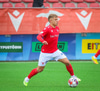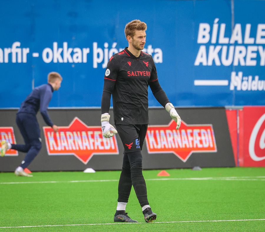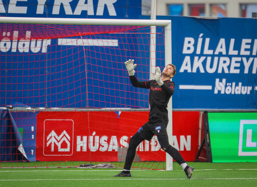 Dagur Fjeldsted með fyrirgjöf sem Frederik handsamar. Grindvíkingar eru að byrja þenna leik með miklum ágætum.
