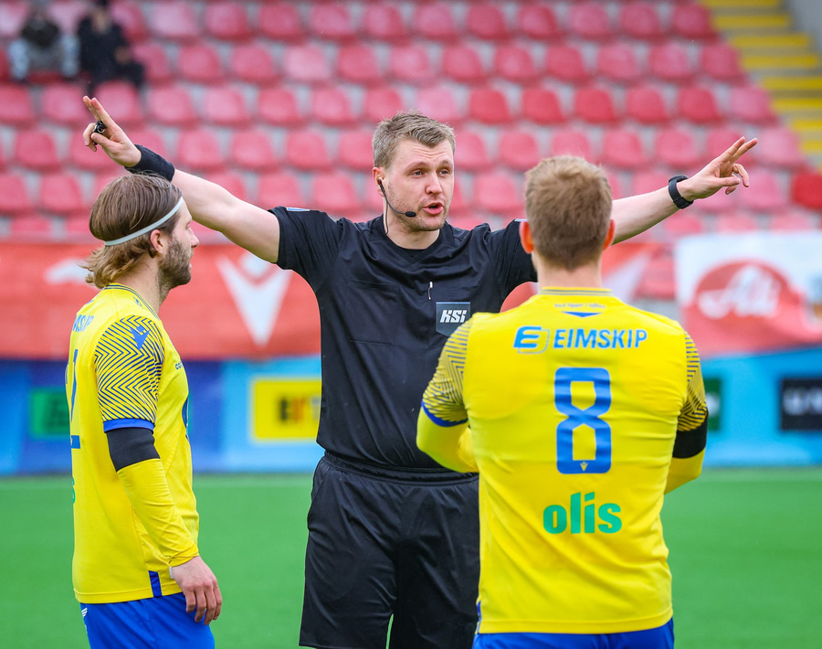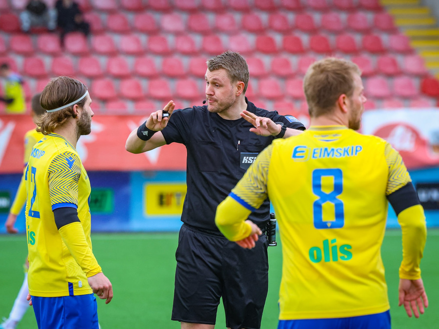 Elías Ingi Árnason dæmir leikinn í dag en hann hefur verið á síðum blaðanna undanfarna daga eftir að hafa dregið vítadóm til baka í Lengjudeildinni á föstudaginn.