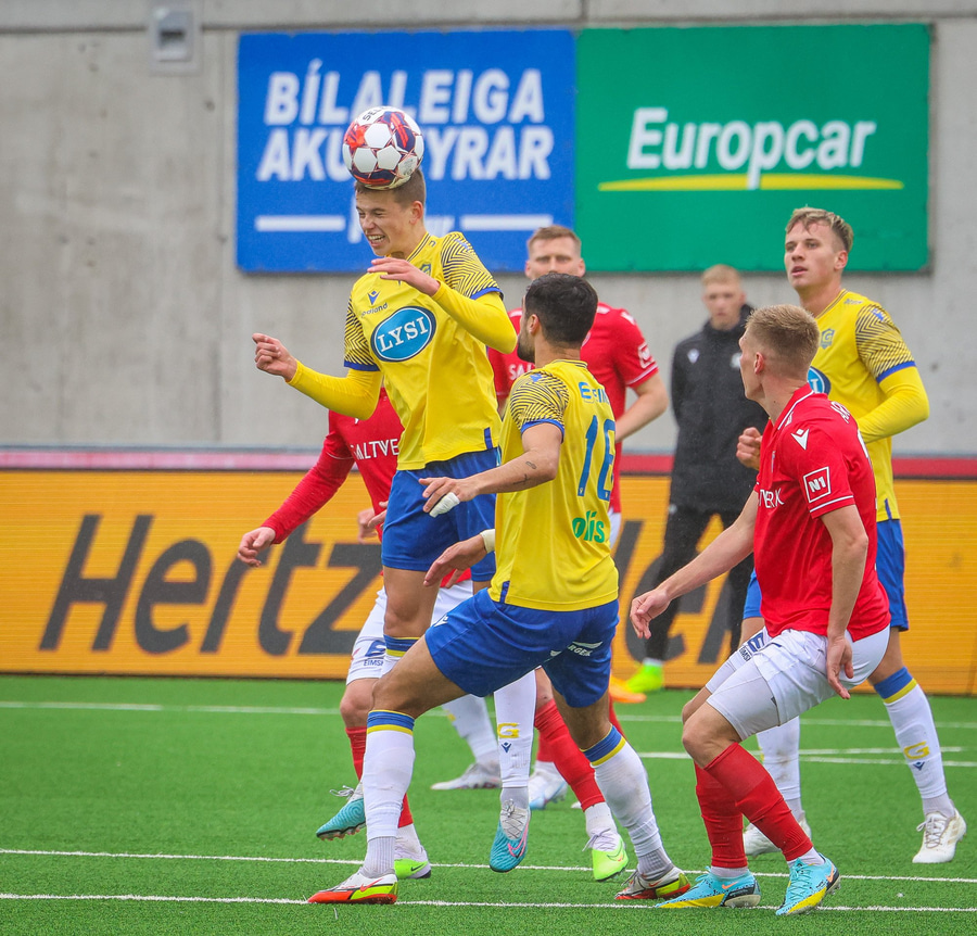 Grindavík komst í lofandi stöðu hægra megin en Viktor Guðberg missti boltann of langt frá sér, við litla hrifningu Helga Sigurðssonar sem hoppar og skoppar í boðvangnum.