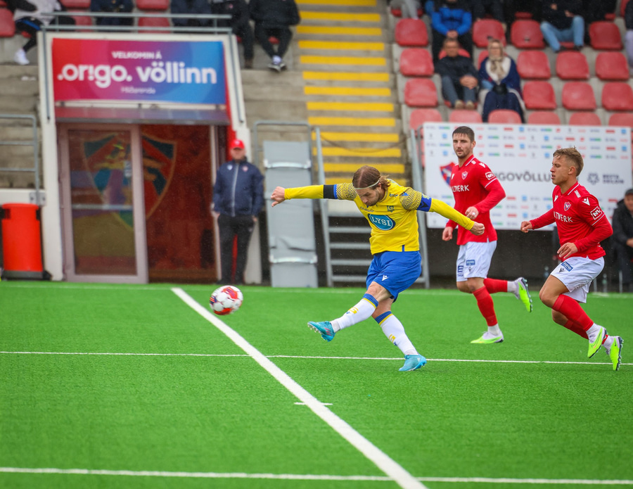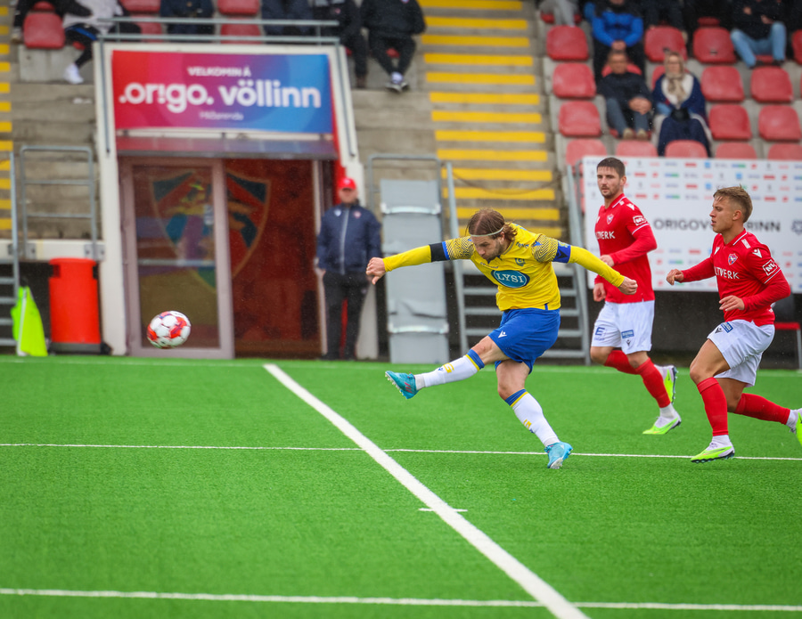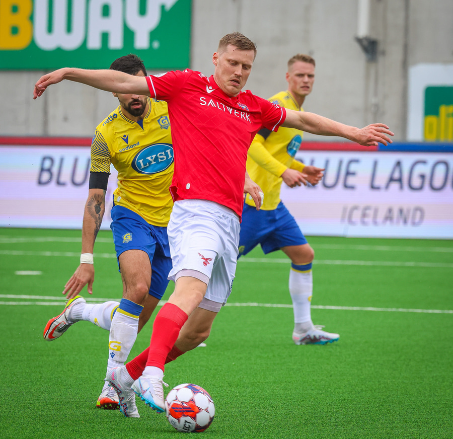 Dagur Tausta hefði getað skorað fjórða mark Grindvíkinga en skaut framhjá.