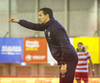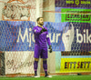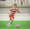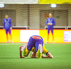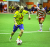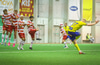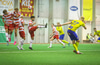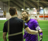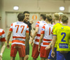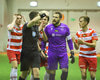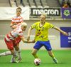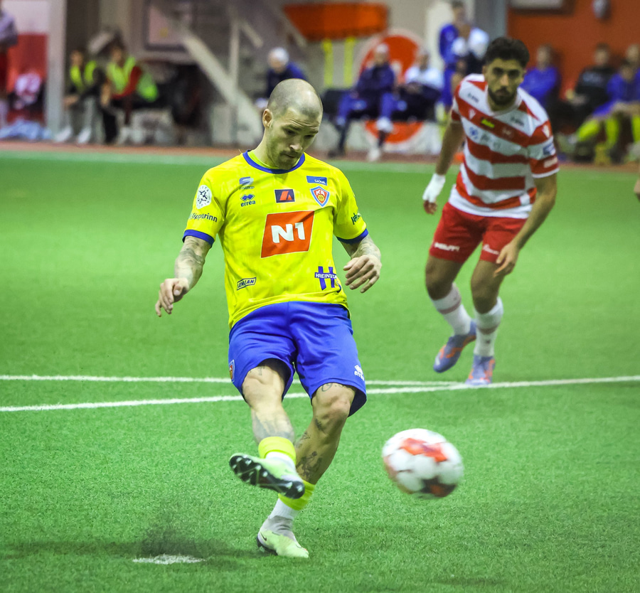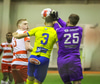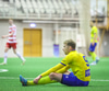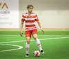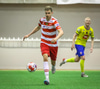 Birgir Baldvins hér með fyrirgjöf sem er nálægt því að enda bara í netinu en endar að lokum ofan á þaknetinu.
