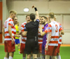 ívar liggur hér eftir harkalegt einvígi við Hrannar Björn. Er samt staðinn á fætur og virðist vera í lagi