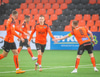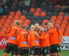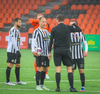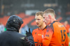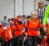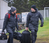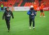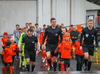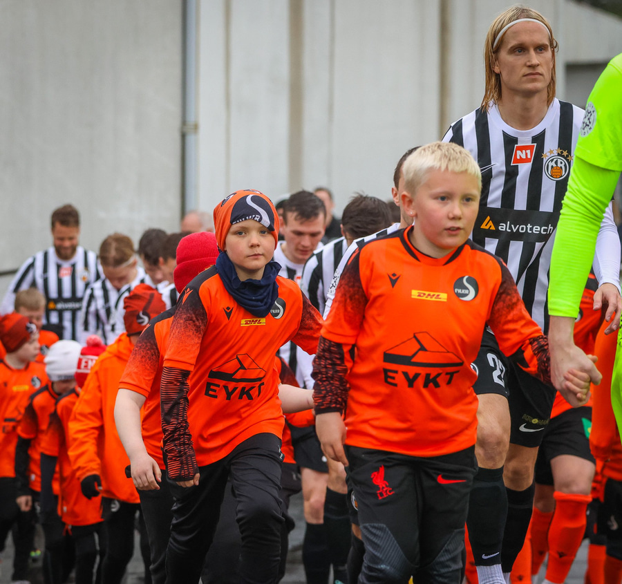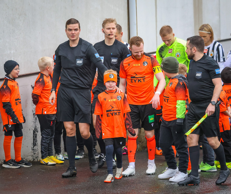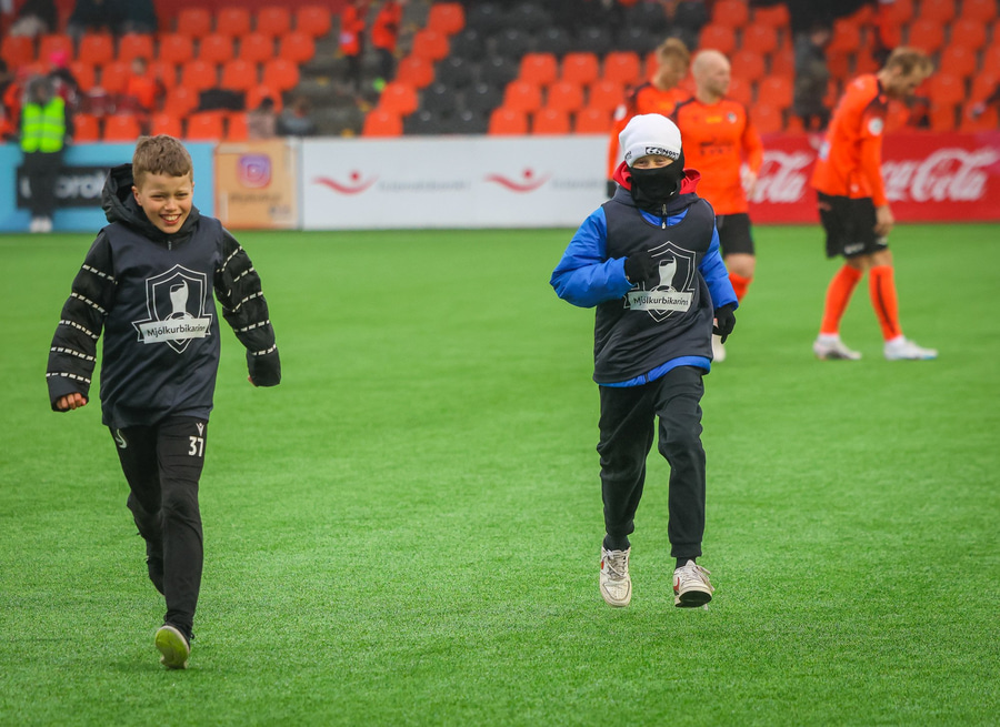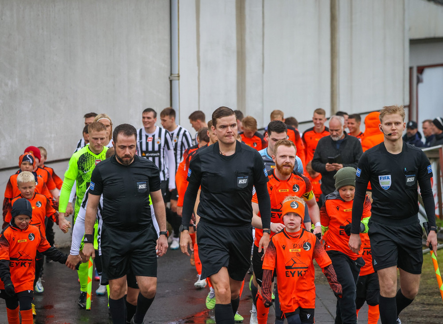 Liðin ganga til búningsherbergja og gera sig klár fyrir slaginn!
