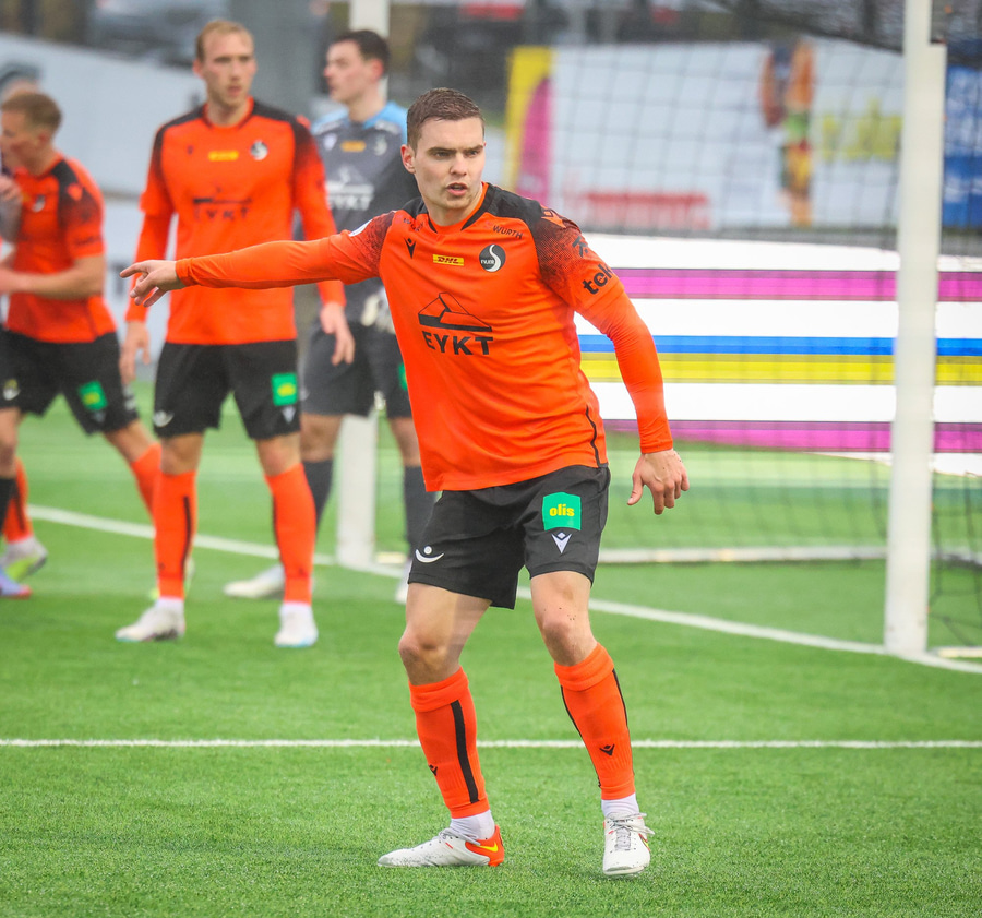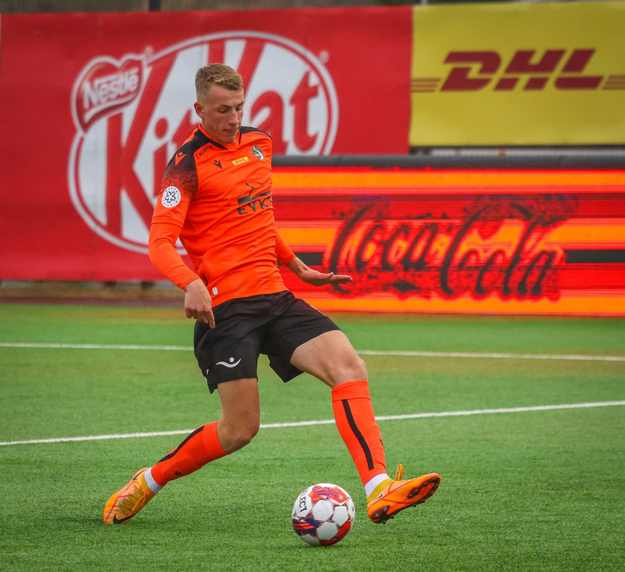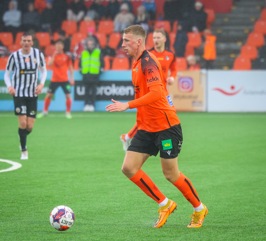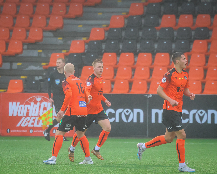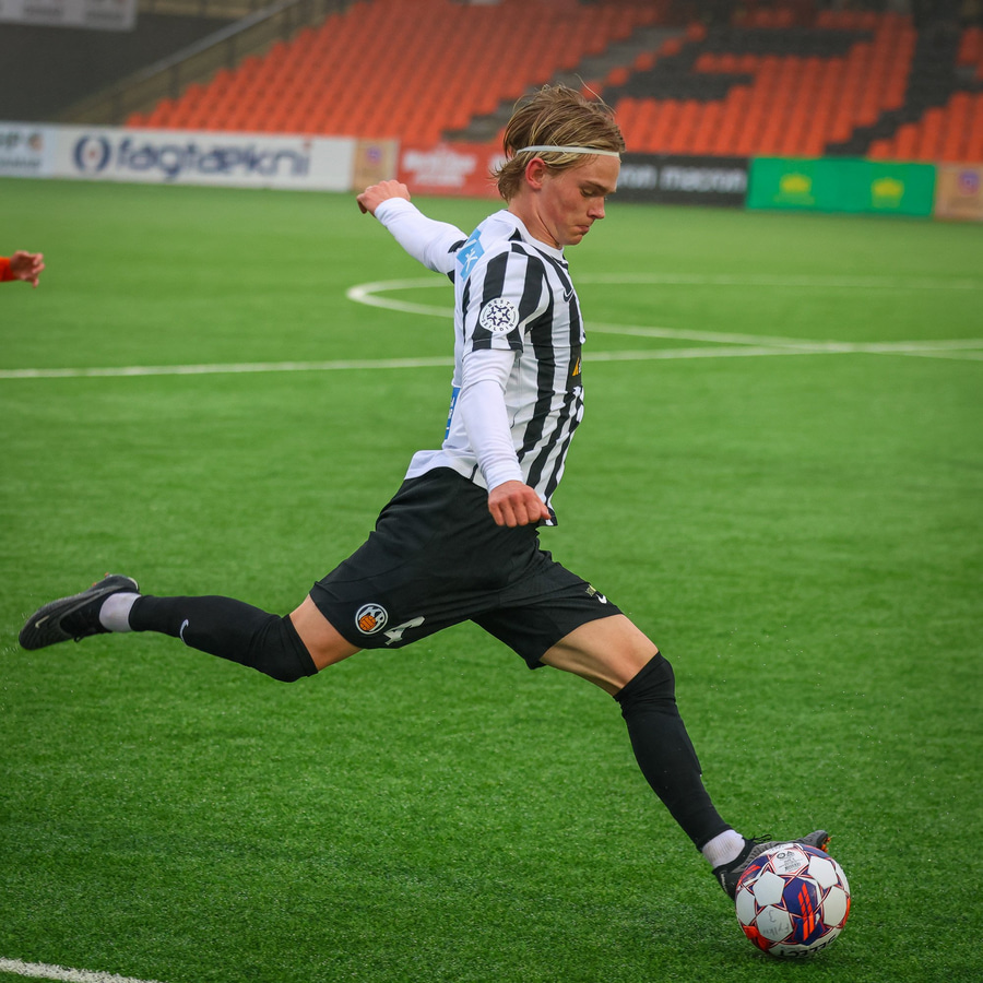 Arnór Breki með frábæra fyrirgjöf úr aukaspyrnu á miðjum vellinum sem fer á Orra. Orri á ágætan skalla sem fer beint á Simen. Orri liggur hinsvegar eftir niðri og þarf aðstoð, það sama á við Jakob Franz