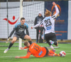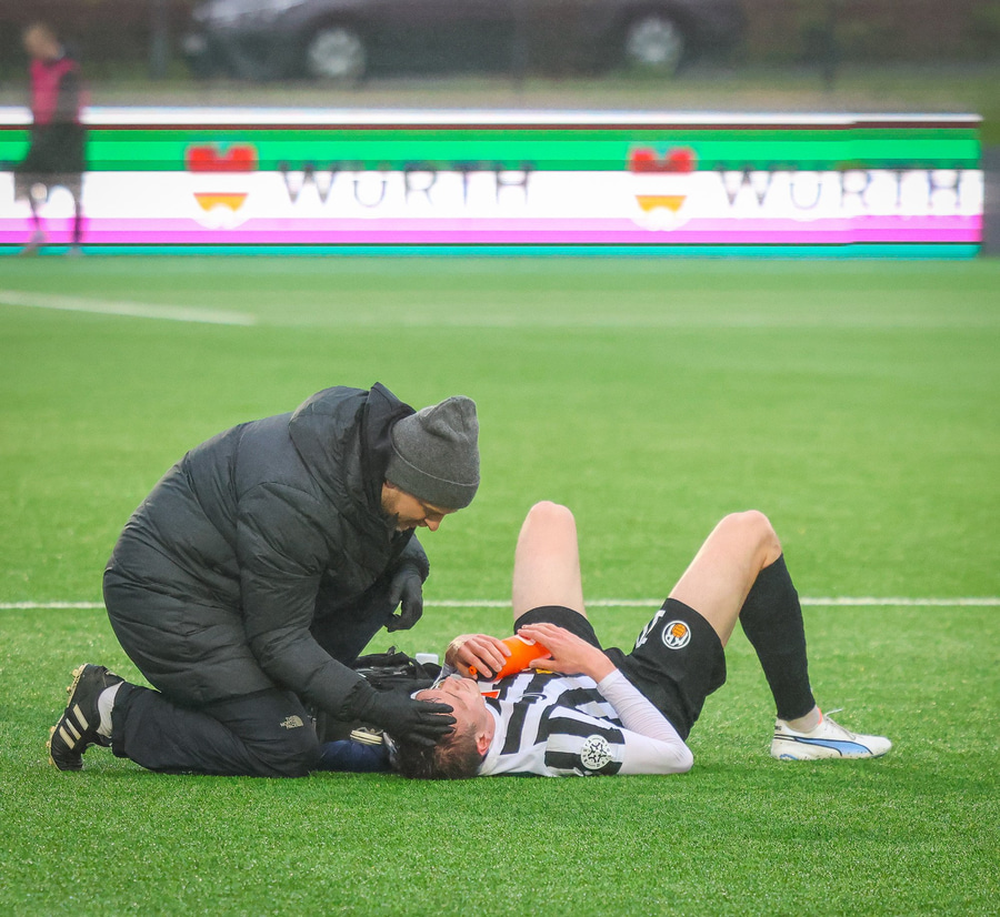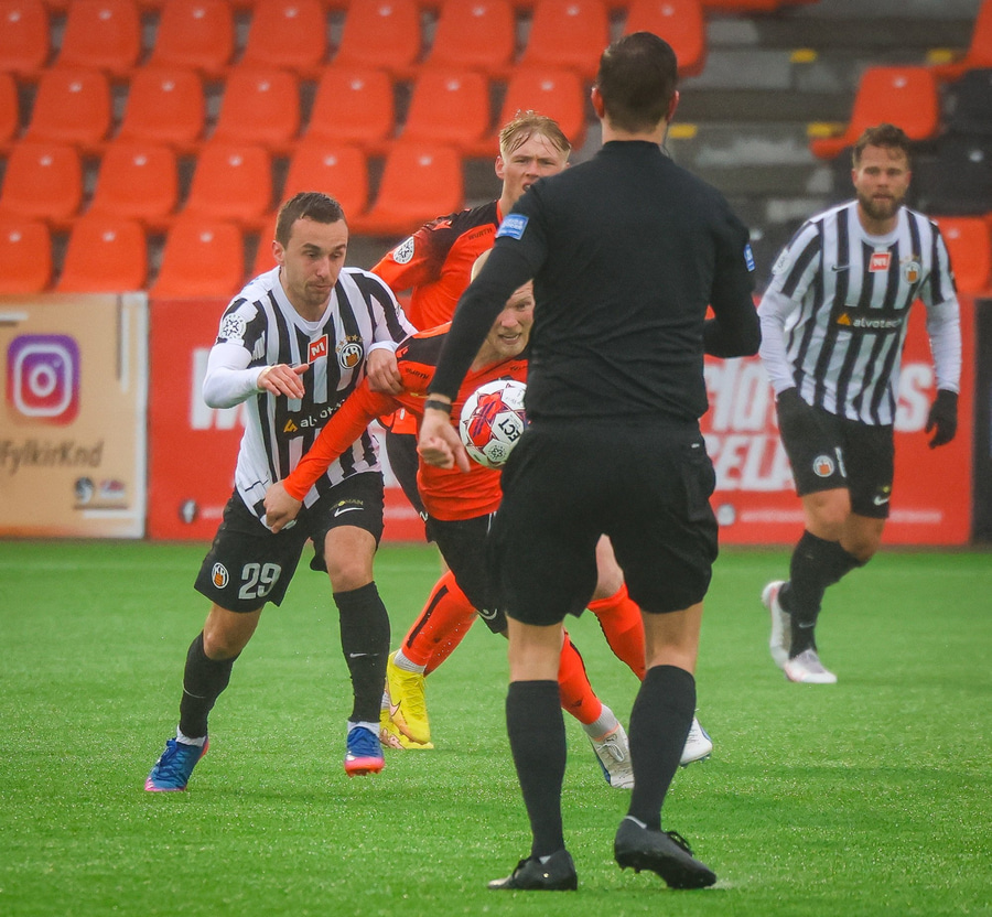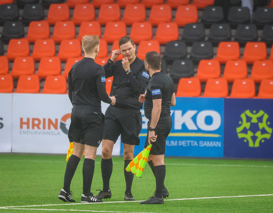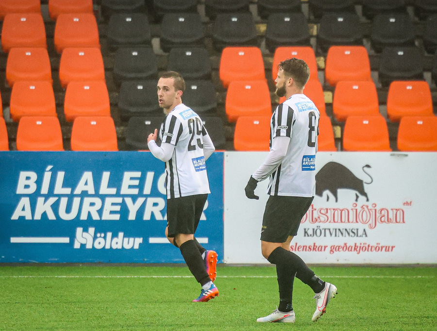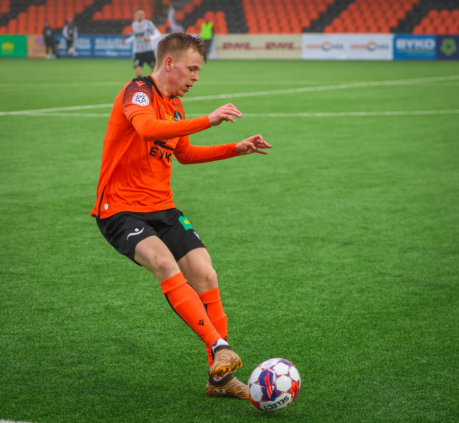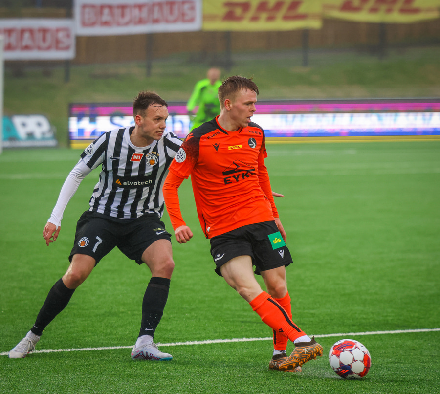 Arnór Breki með frábæra fyrirgjöf úr aukaspyrnu á miðjum vellinum sem fer á Orra. Orri á ágætan skalla sem fer beint á Simen. Orri liggur hinsvegar eftir niðri og þarf aðstoð, það sama á við Jakob Franz