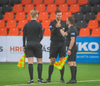 Allir leikmenn, áhorfendur og varamannabekkur Fylkis mótmæla harkalega í dómarann. Þetta var mjög skrítið atvik.