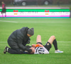 Kristján virðist hafa fengið eitthvað högg í aðdraganda marksins. Þarf að víkja.