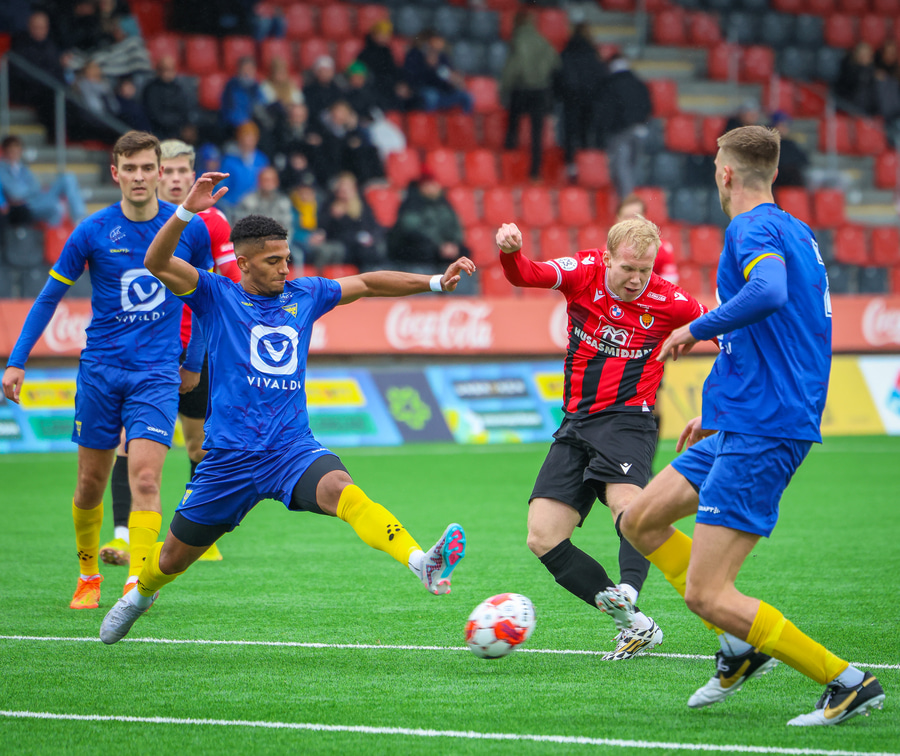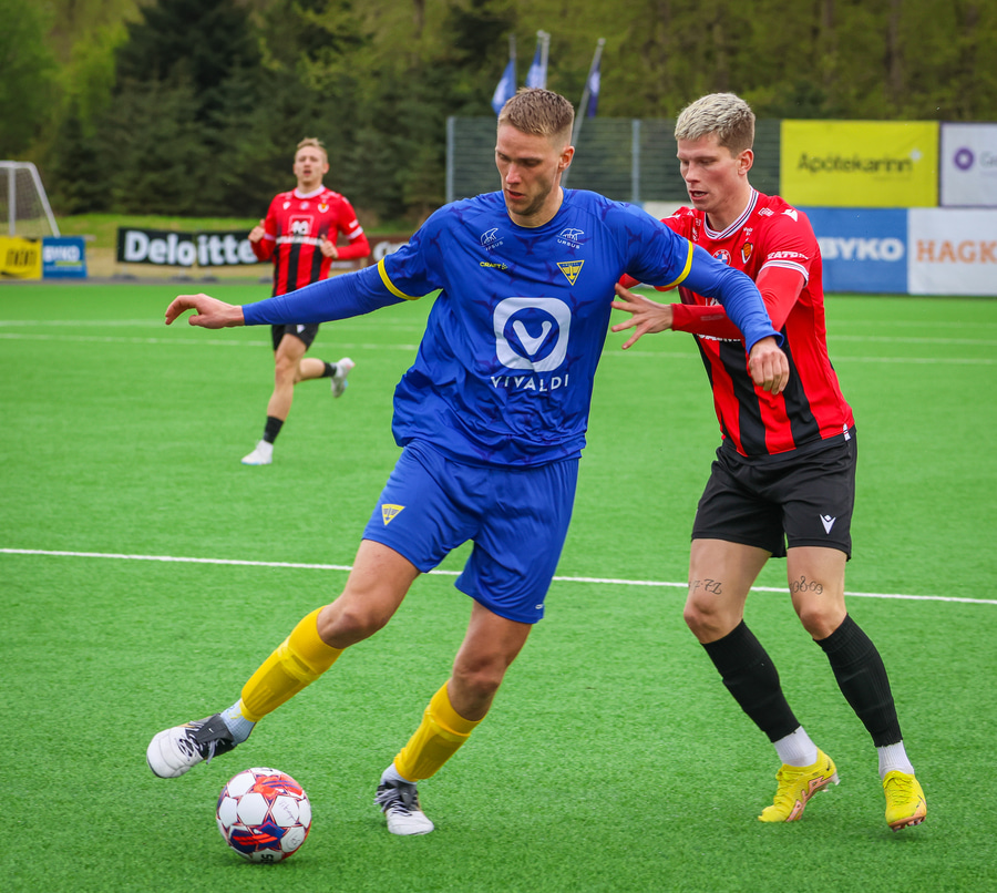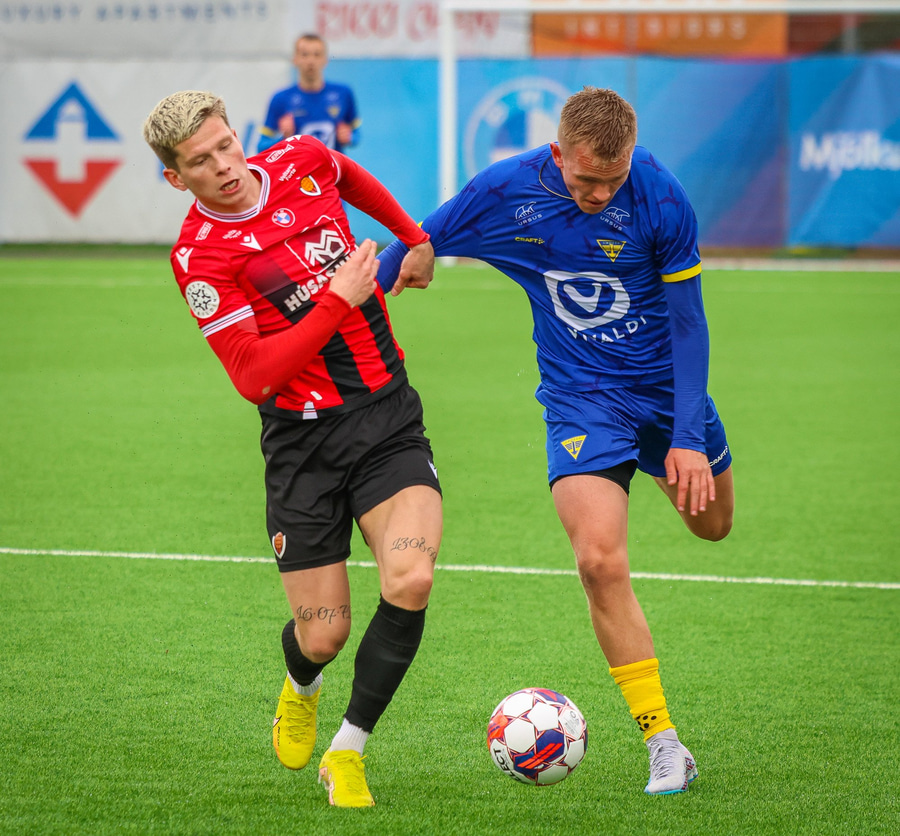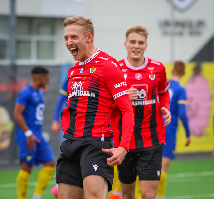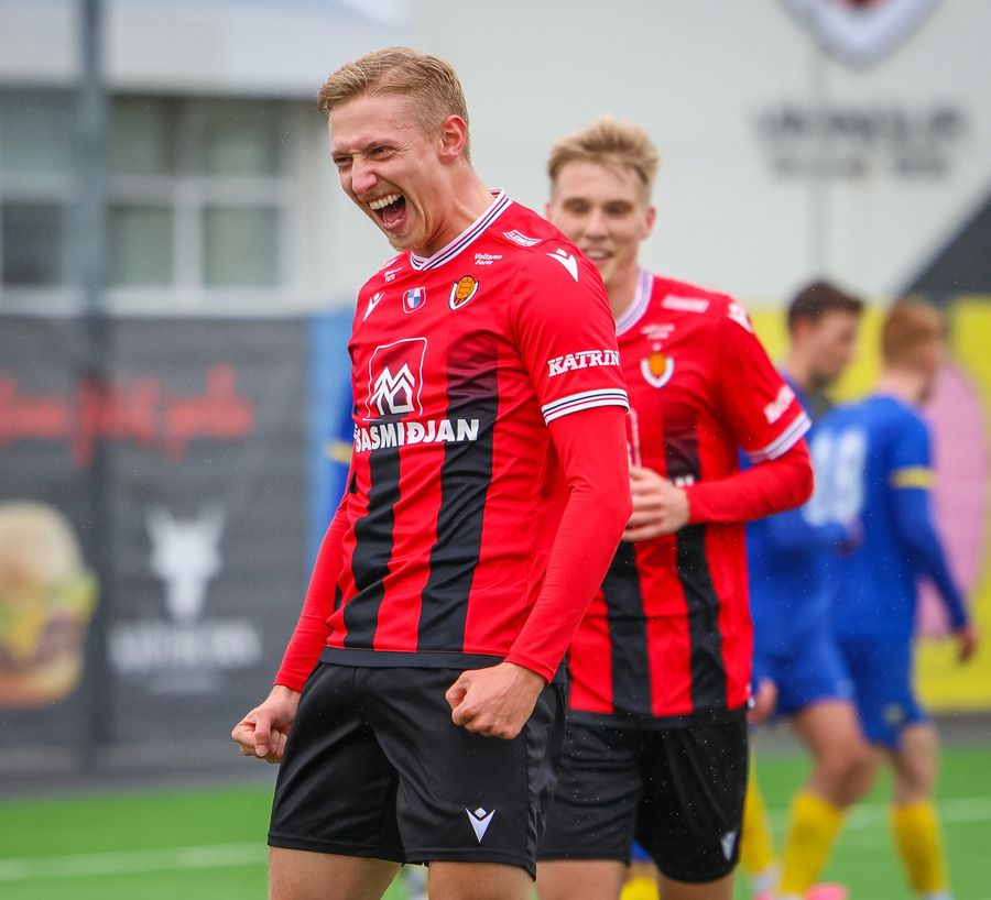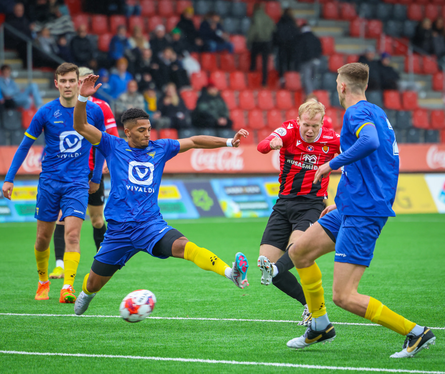 Alvöru barátta milli Ivan Óla og Ekroth þegar þá fyrrnefndi reynir að komast framhjá honum. Öxl í öxl yfir endalínu og alvöru barningur og Ekroth er að elska það. Sýnist hann brosa út að eyrum eftir þetta.