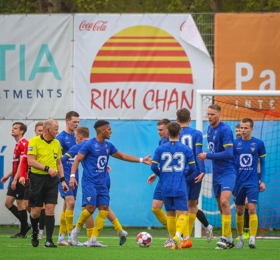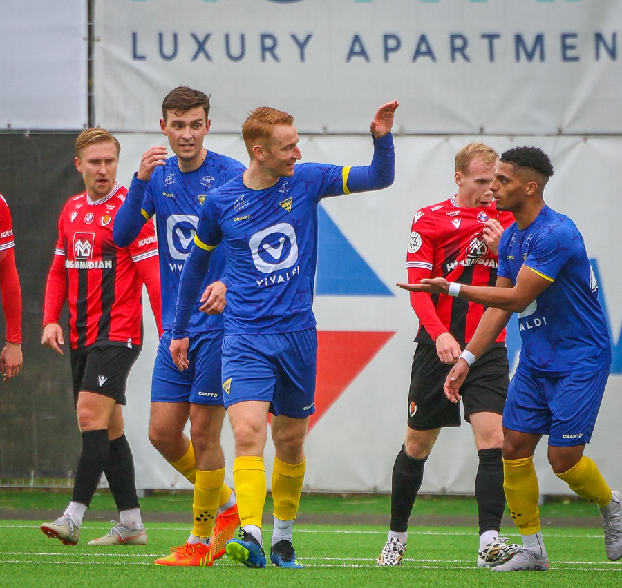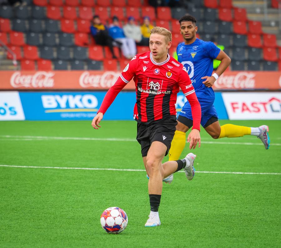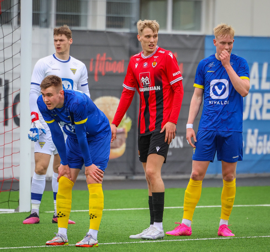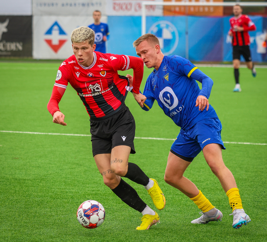 Alvöru barátta milli Ivan Óla og Ekroth þegar þá fyrrnefndi reynir að komast framhjá honum. Öxl í öxl yfir endalínu og alvöru barningur og Ekroth er að elska það. Sýnist hann brosa út að eyrum eftir þetta.