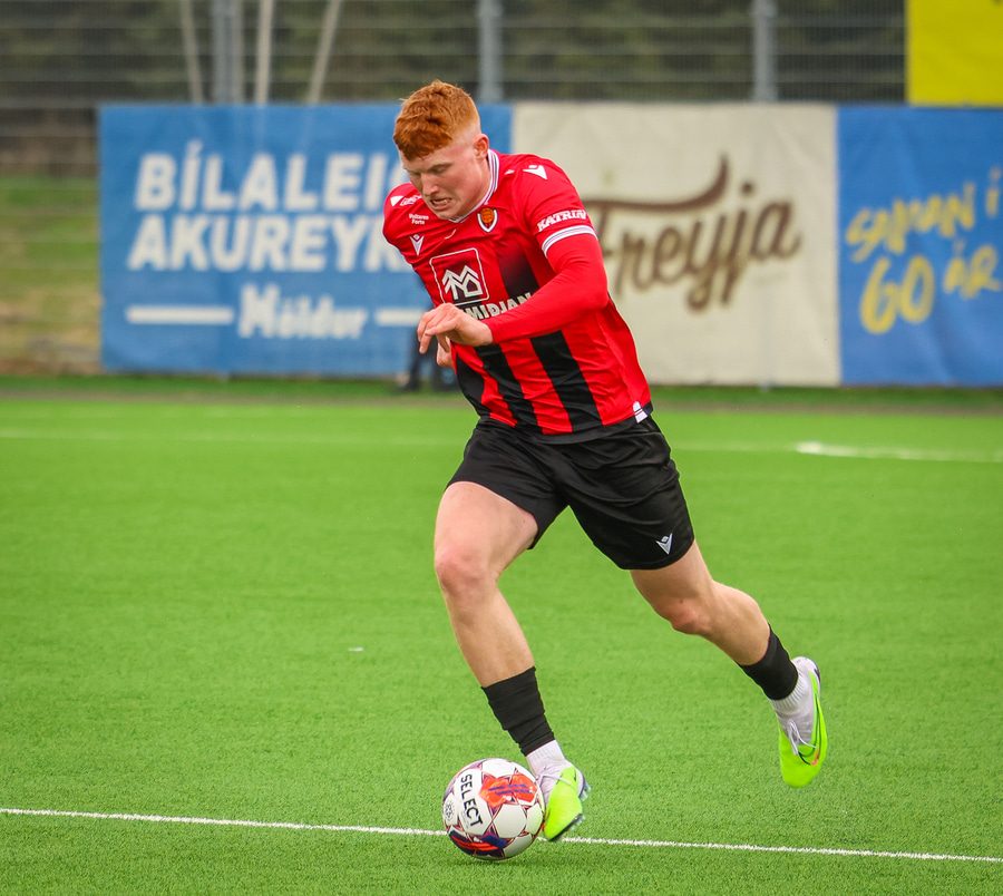 Arnar Þór í hörkufæri en skalli hans í varnarmann og afturfyrir.