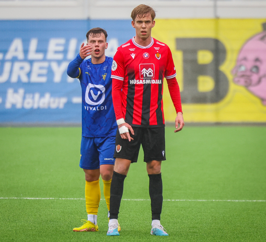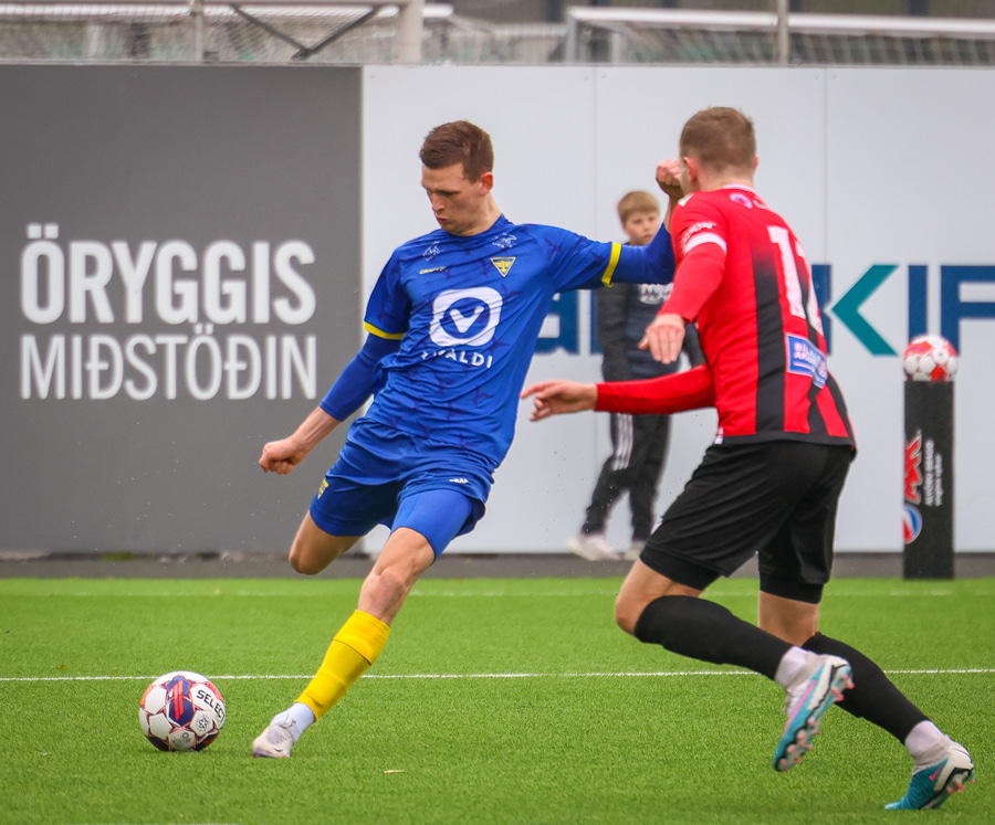 Sveinn Gísli er í bölvuðu brasi með Patrik Orra og hleypir honum hér inn á teig Víkinga þar sem Patrkik á skot sem Þórður þarf að hafa fyrir að verja.